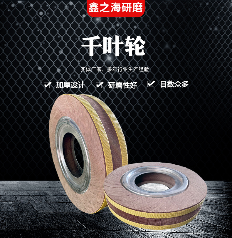 千叶轮适用于各种不锈钢、金属、木材等多个领域的表面大面积粗抛、修磨、除锈和磨削,对各种不规则型面的抛光整形、不同材料机械制造多方面的除锈打磨,抛光效率高,使用寿命长。